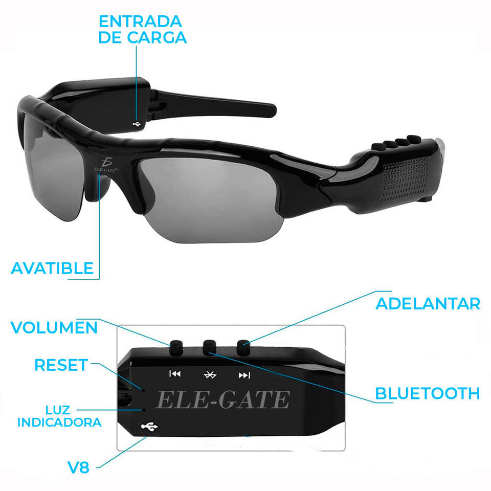Occhiali da Sole con Cuffie Wireless Senza Fili, Indicatore LED della Batteria, Codec SBC, Controllo a Pulsante