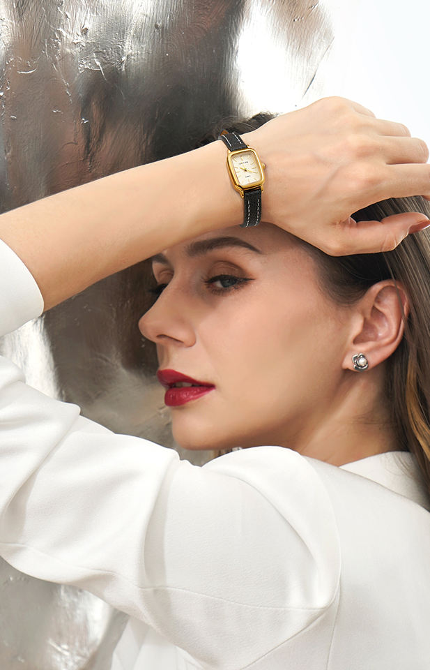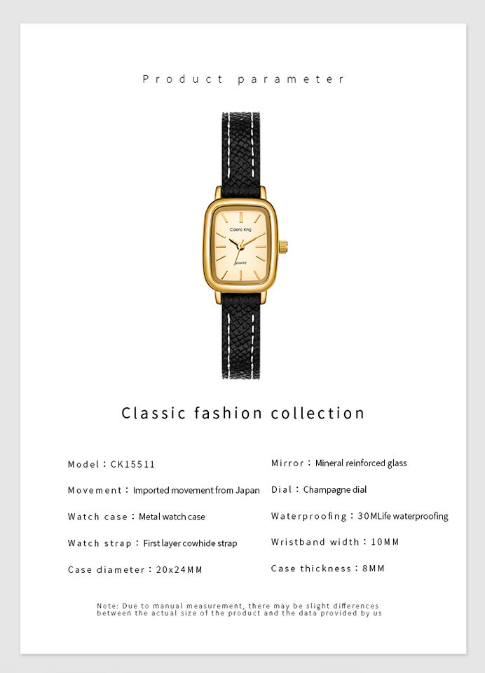 For CK Women's Luxury Small Square Waterproof Business Watch Alloy Case Quartz Genuine Leather Band Fashionable for Ladies