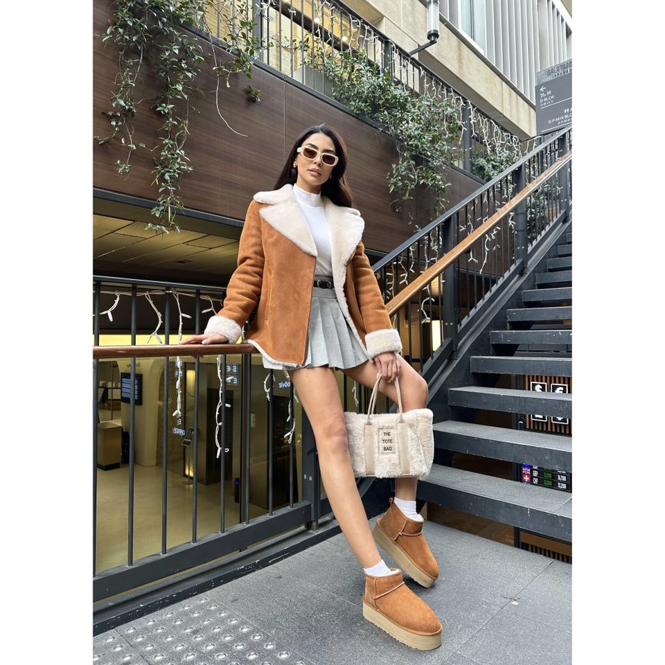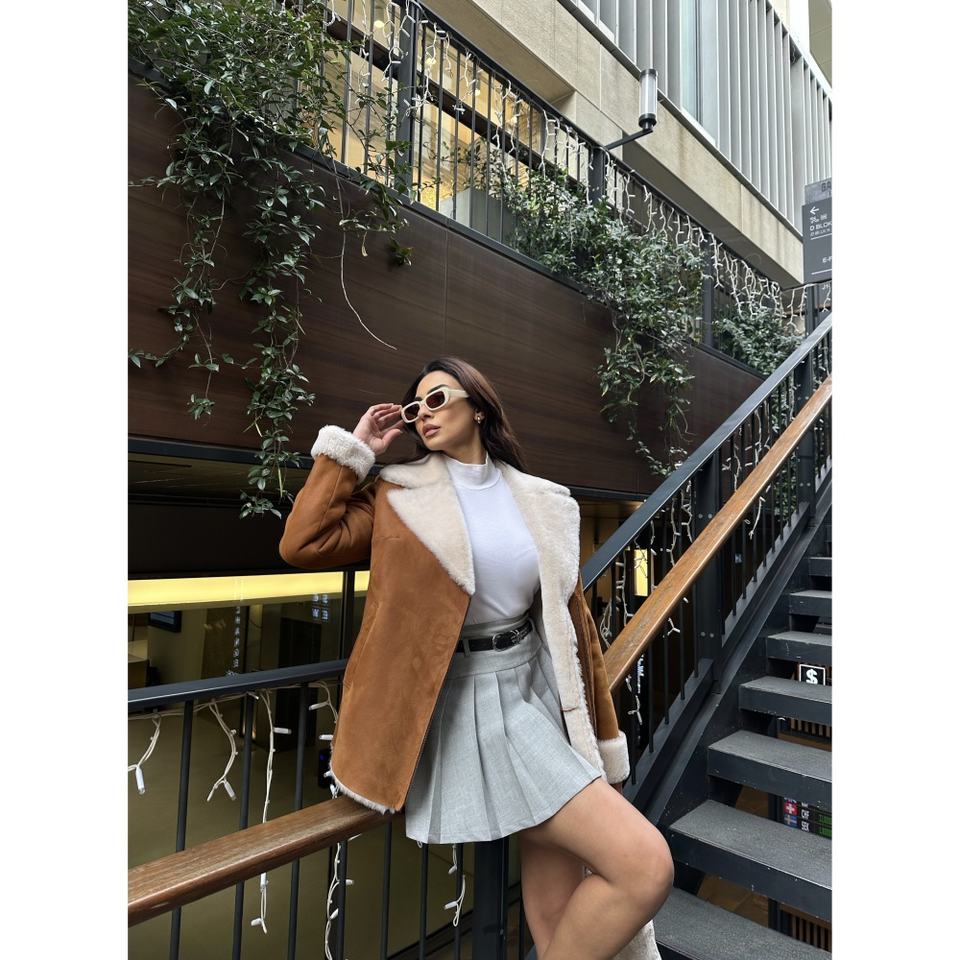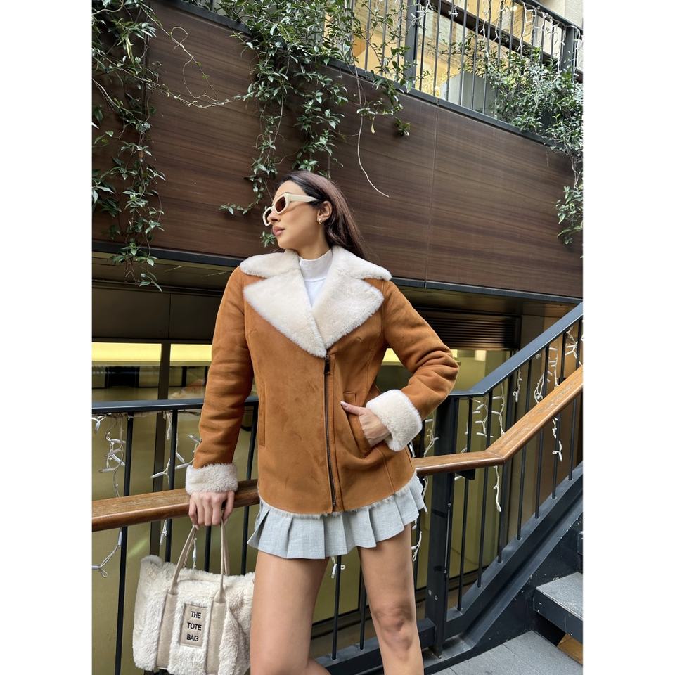 For Camel Shearling Winter Coat for Women Handmade Genuine Sheepskin Outerwear Cashmere OEM Private Label Manufacturer Turkey