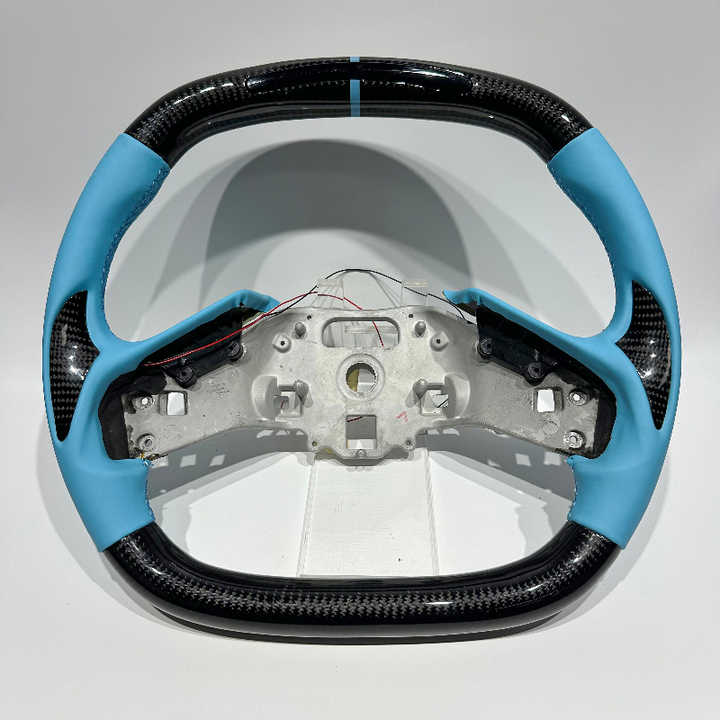 Volante in Fibra di Carbonio Nera con Pelle Liscia Personalizzabile per Chevrolet Corvette C8 C7 C6