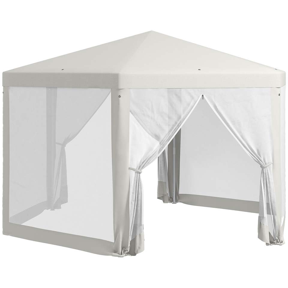 Tenda Esagonale Bianco Crema 13' X 11' per Feste all'Aperto, Riparo dal Sole con Pareti Laterali in Rete Protettiva per Matrimoni