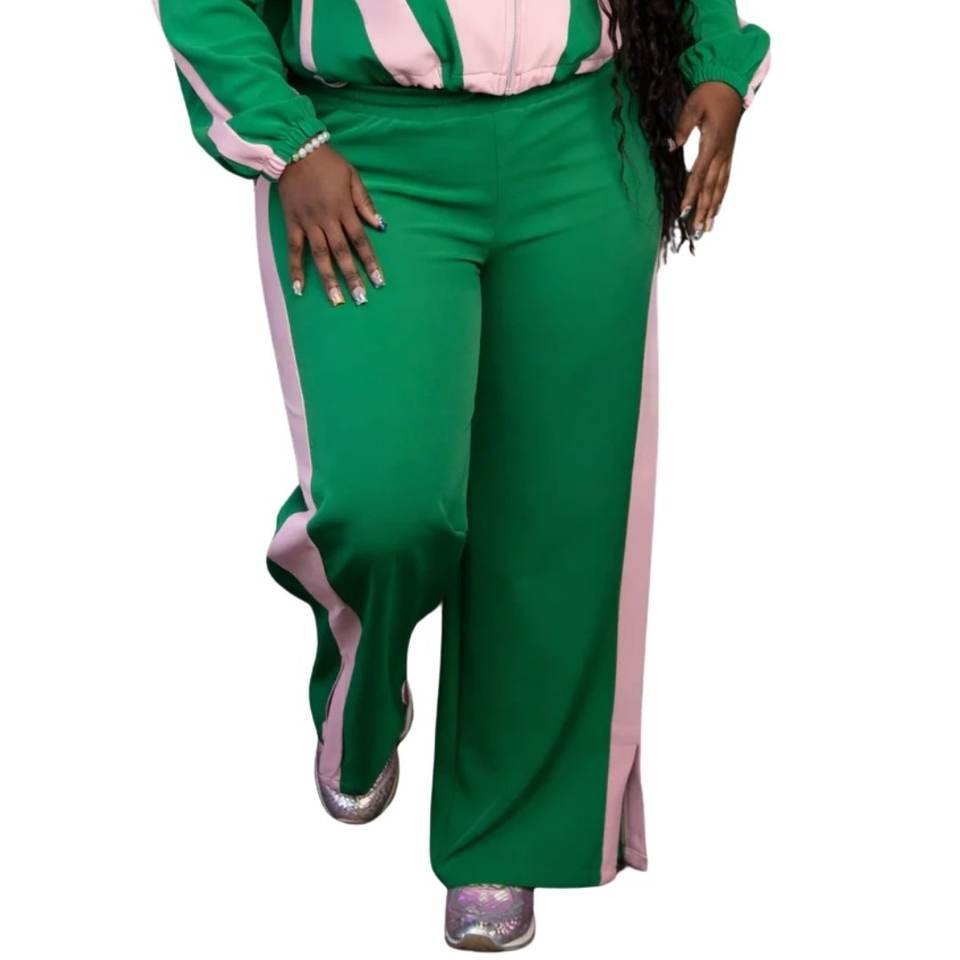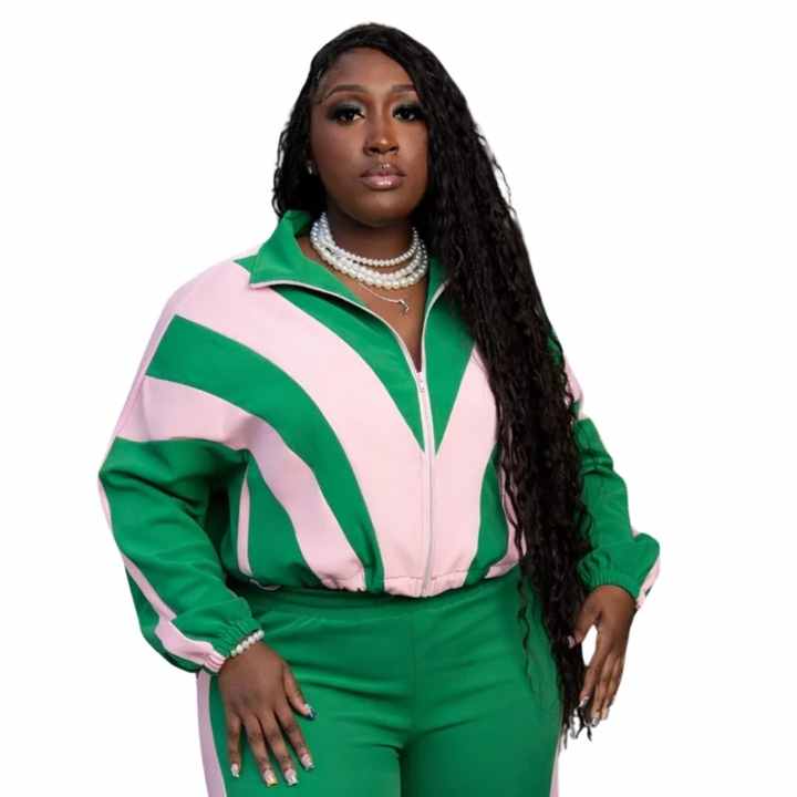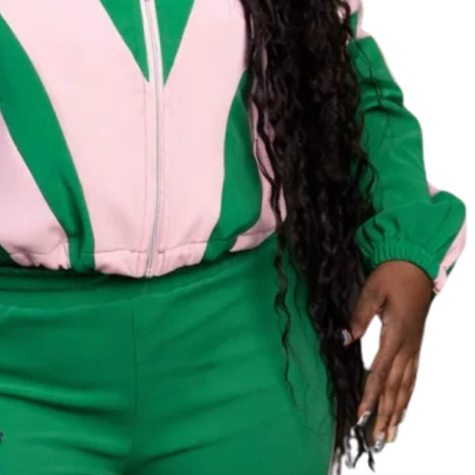 Tuta Sportiva Invernale Casual da Donna con Stampa Retrò, Set Due Pezzi Rosa Verde, Giacca con Zip e Pantaloni a Gamba Larga, Abbigliamento Sportivo Premium