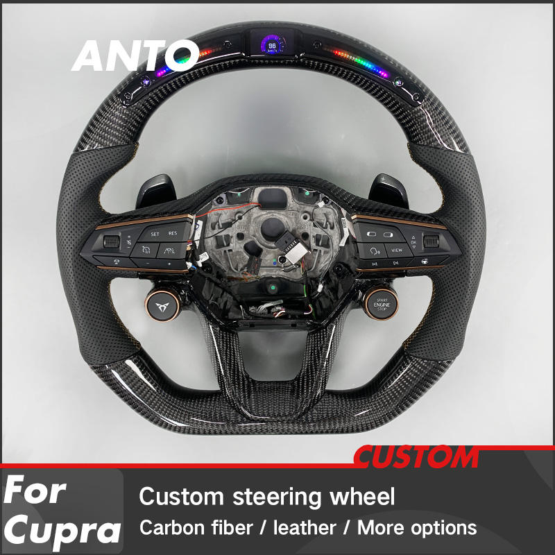 For Cupra Formentor VZ5 Leon Tavascan Terramar Born VZ Ateca Racing Style Custom Real Carbon Fiber Steering Wheel with Smart LED