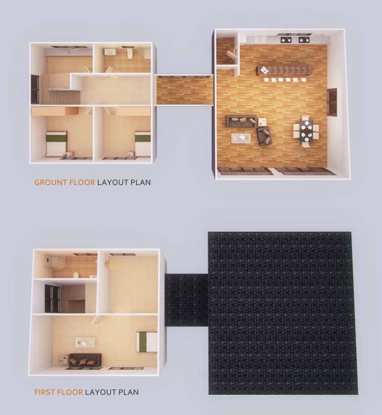 Casa Prefabbricata Econel 142mq con 1 Soggiorno, 3 Camere da Letto, Impermeabile per Bagno, Supermercato, Palestra, Cortile, Sala da Pranzo