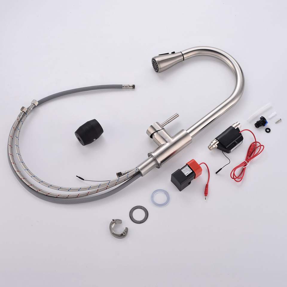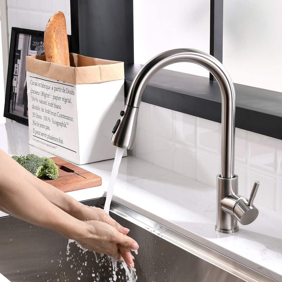 Rubinetto da cucina FLG monocomando in ottone con doccetta estraibile a 2 vie e funzione touch, per lavello