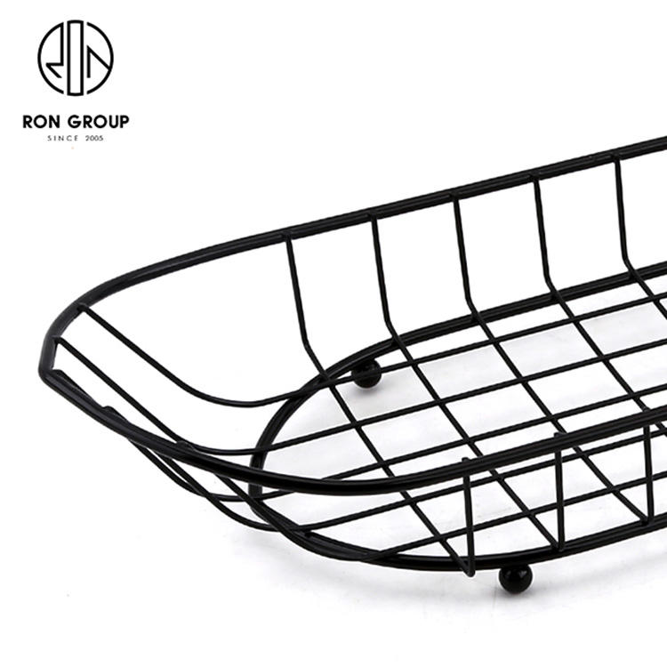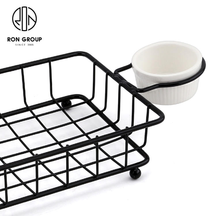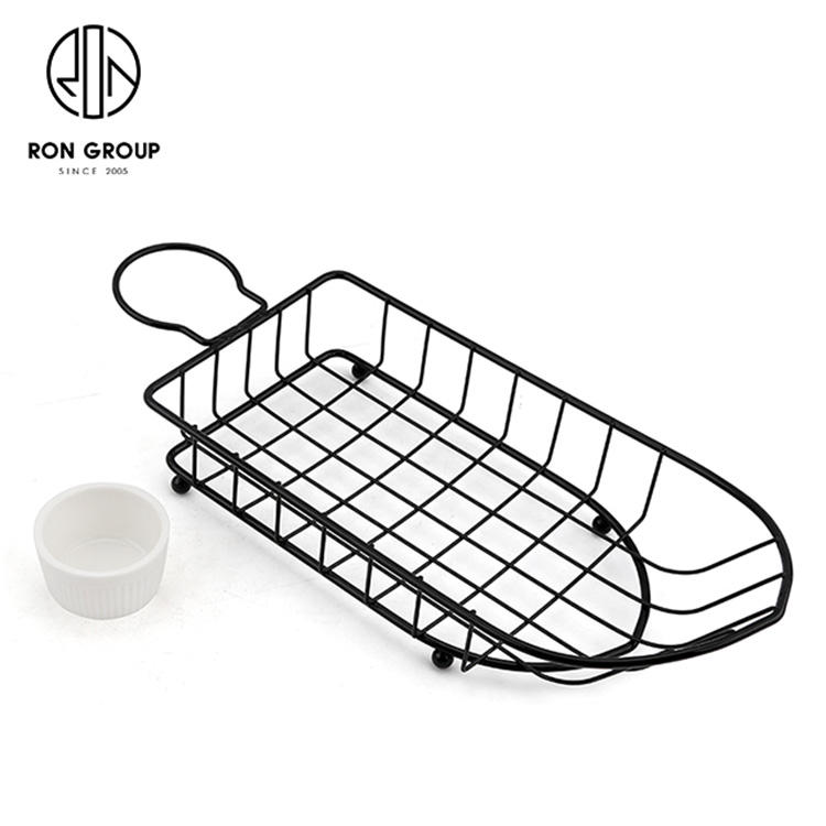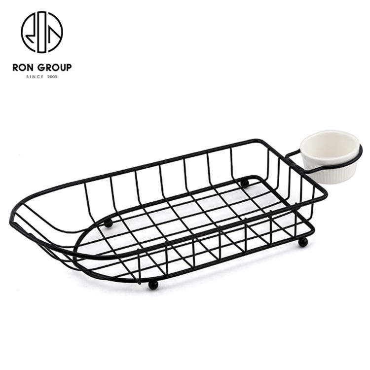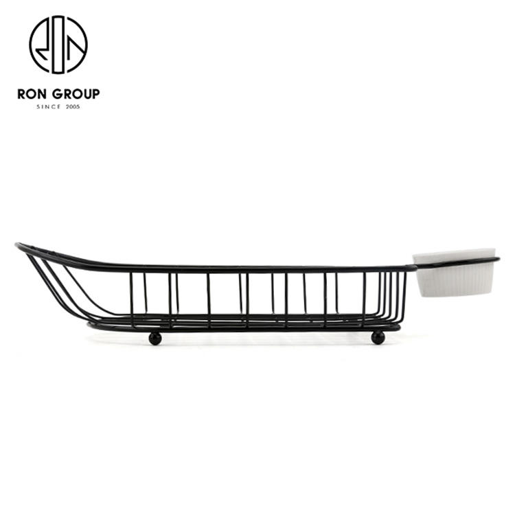 Per friggere cestini per pane Chipschicken vendita in fabbrica filo metallico cestino a forma di barca nero con un portabicchieri per salsa per cucina