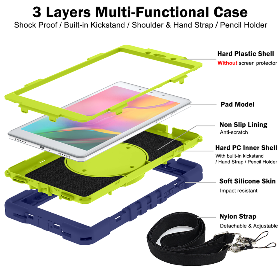 Per Galaxy Tab A8.0 Custodia in 2019 con cavalletto, copertura robusta antiurto per Samsung A8 Tablet custodia da 8 pollici, copertura Tablet Galaxy A8