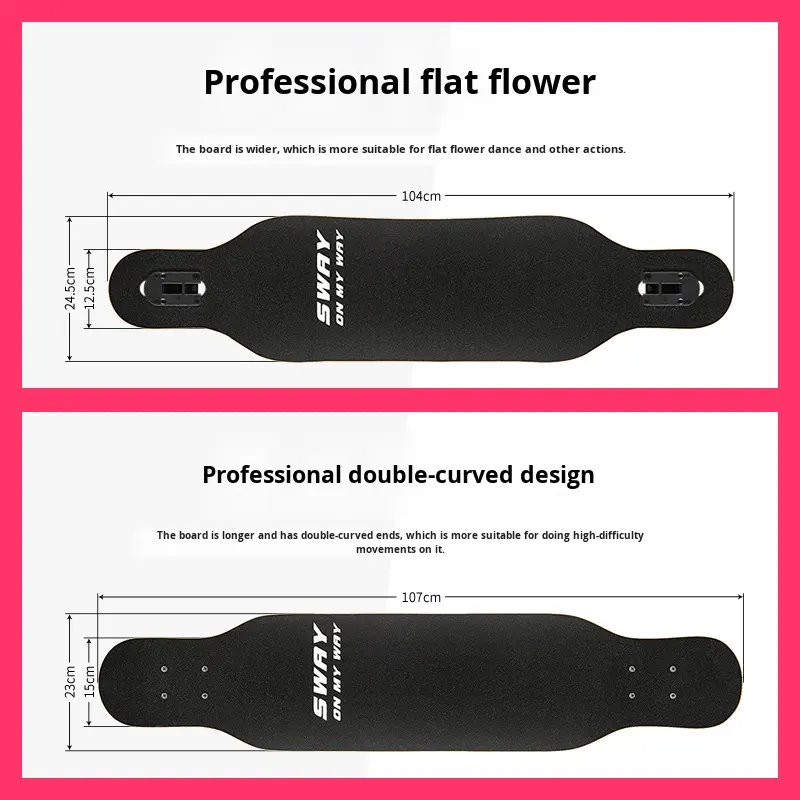 Skateboard Longboard Professionale a Quattro Ruote con Doppio Rocker per Ragazze, Tavola da Danza per Principianti Bambini, Deck in PU 104cm