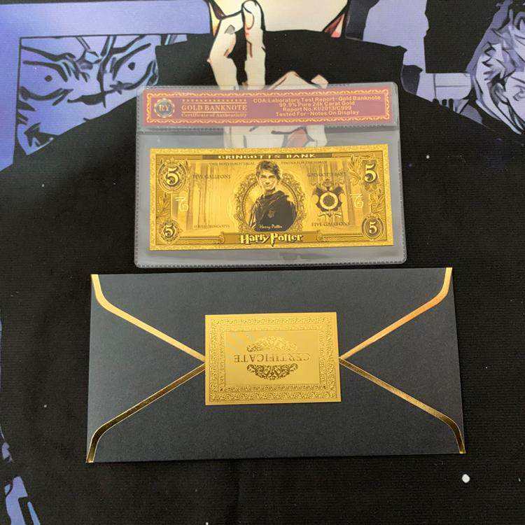 For Gold Coin Movie Fan Collection Custom Card Hogwarts Handmade Gold Foil PET Rectangular Gift Bag Packaging