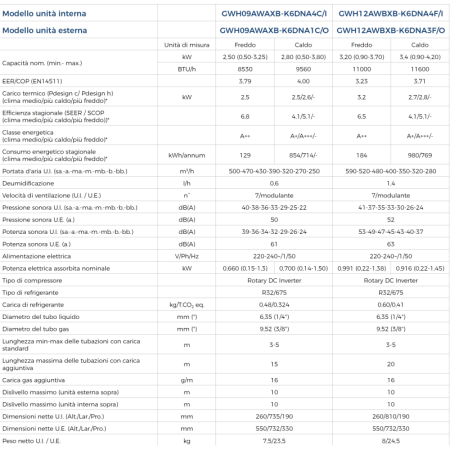 Condizionatore d'Aria Inverter Elettrico Dual Split Cosmo Wifi 18001-24000 A++ R32 GWHD(42)NK6OO a Risparmio Energetico a Frequenza Variabile