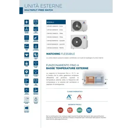 Condizionatore d'Aria Inverter Dual Split Pular 18001-24000 Watt A++ per Uso Domestico, Raffreddamento/Riscaldamento, R32 GWHD(28)NK6OO Elettrico Wi-Fi