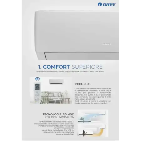 Condizionatore d'Aria Elettrico Pular 10001-12000 BTU A++ Inverter Dual Wi-Fi R32 a Risparmio Energetico Raffreddamento/Riscaldamento 299-399 Piedi Quadrati