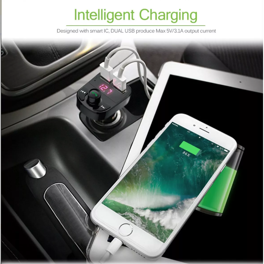 Trasmettitore FM per Auto con Caricatore, Controllo Remoto DSP, Stereo, 2 Porte USB 3.1 per Ricarica, Lettore MP3 3-in-1 per Telefono