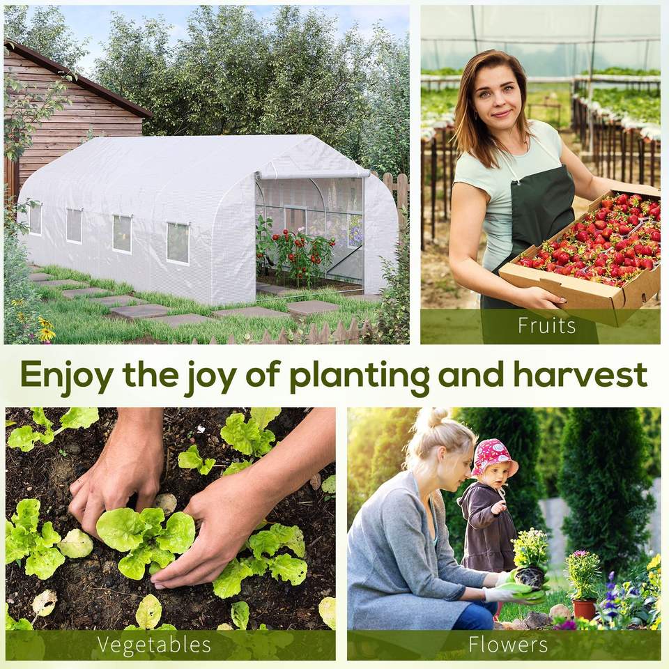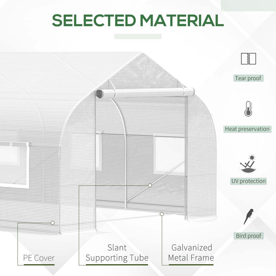 Serra con Telaio in Acciaio Rinforzato 6x3x2m, con Finestre Avvolgibili e Porta con Cerniera, in PE Bianco