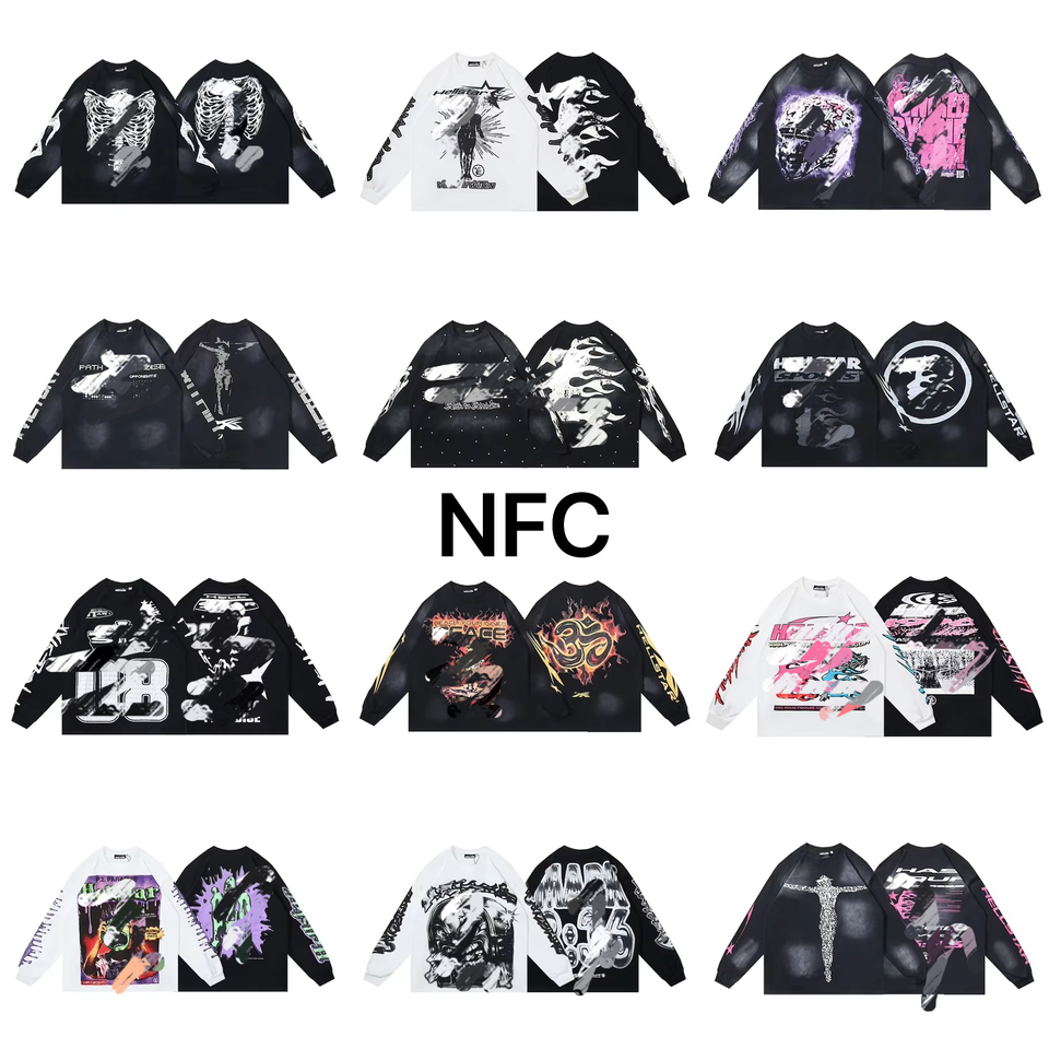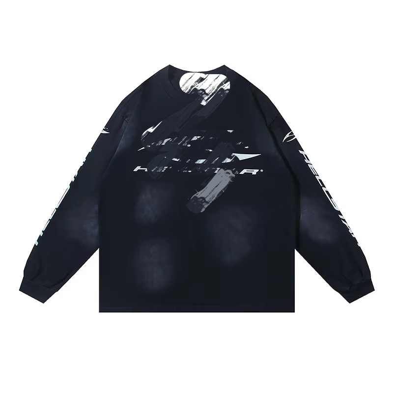 T-shirt Casual in Cotone 100% da 280 Grammi con Stampa Vintage Effetto Acqua, Vestibilità Ampia, Manica Lunga, per Uomo e Donna - Stile High Street