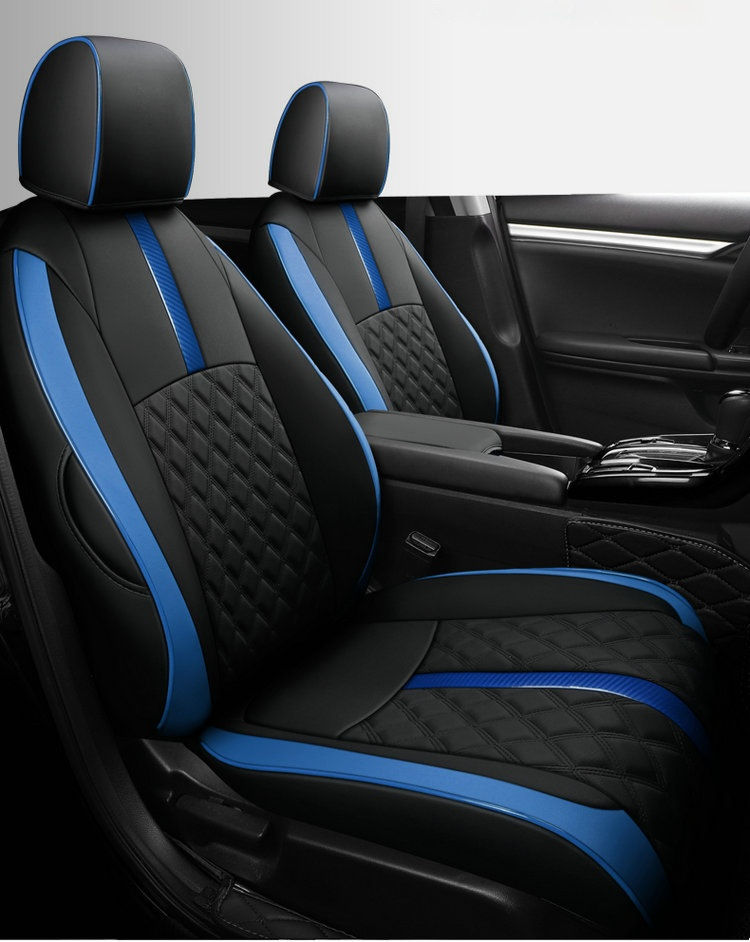 For Honda Civic 2016-2021 Custom Leather Car Seat Covers 5-Seater Waterproof Protector in Blue Black Accessory