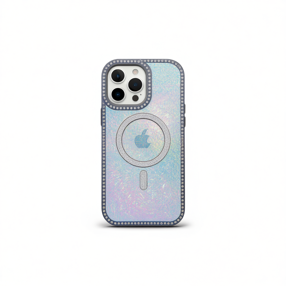 Custodia Magnetica per iPhone 15 Pro con Effetto Diamante Iridiscente