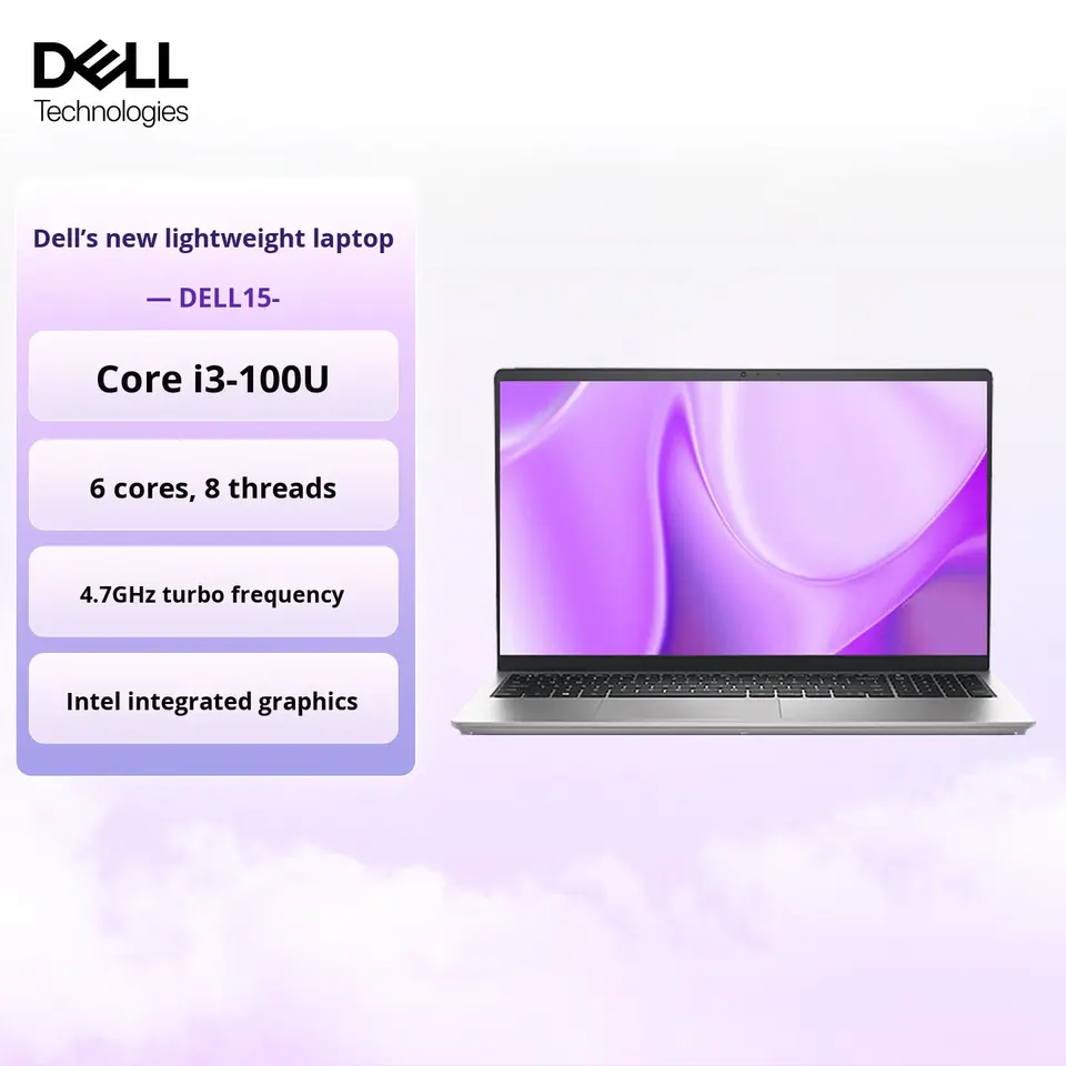 Laptop Inspiron 15 Pro Slim con Processore Intel Core I3, SSD, Schermo da 15.6 Pollici 120Hz con Protezione Occhi, Alte Prestazioni per Studenti, Ufficio e Business