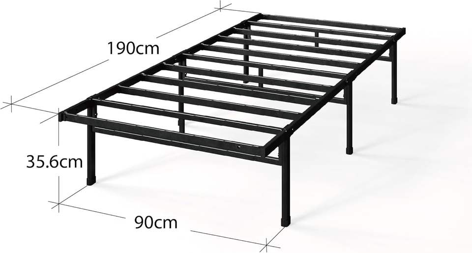 Letto Justin 90 x 190 cm - Altezza 36 cm con contenitore sotto il letto - Letto a piattaforma in metallo - Nero - Cina