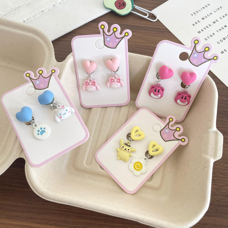 For Kids Children's Cartoon Clip-on Earrings for Little Girls-Painless Ear Drop Design False Earrings