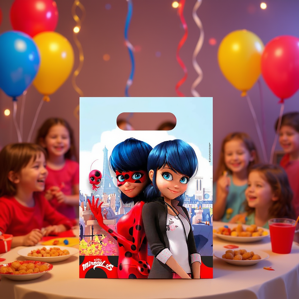 Sacchetti Regalo per Festa di Compleanno a Tema Coccinella, Confezione da 6 Pezzi in Plastica, Stampa a 4 Colori, per Bambini dai 5 ai 7 Anni