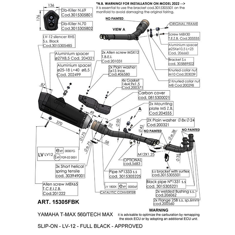 Sistema di Scarico Moto LeoVince LV-12 Inox Nero per YAMAHA T-MAX 560/TECH MAX (20-23) Modello 15305FBK