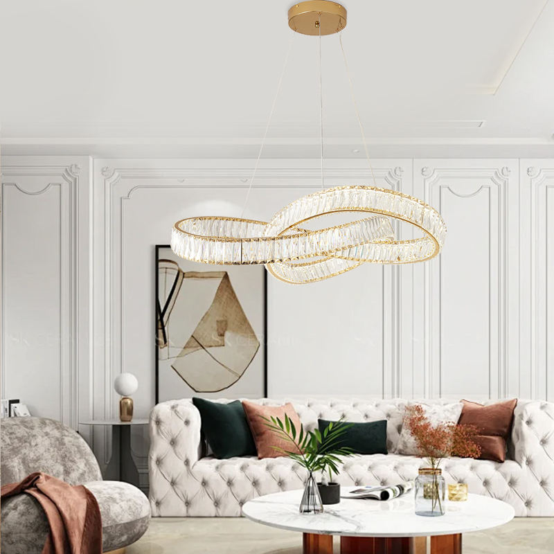 Per MEEROSEE MD98043 lampadario LED regolabile in altezza incrociato 2 anelli con sospensione di cristallo per soggiorno o camera da letto