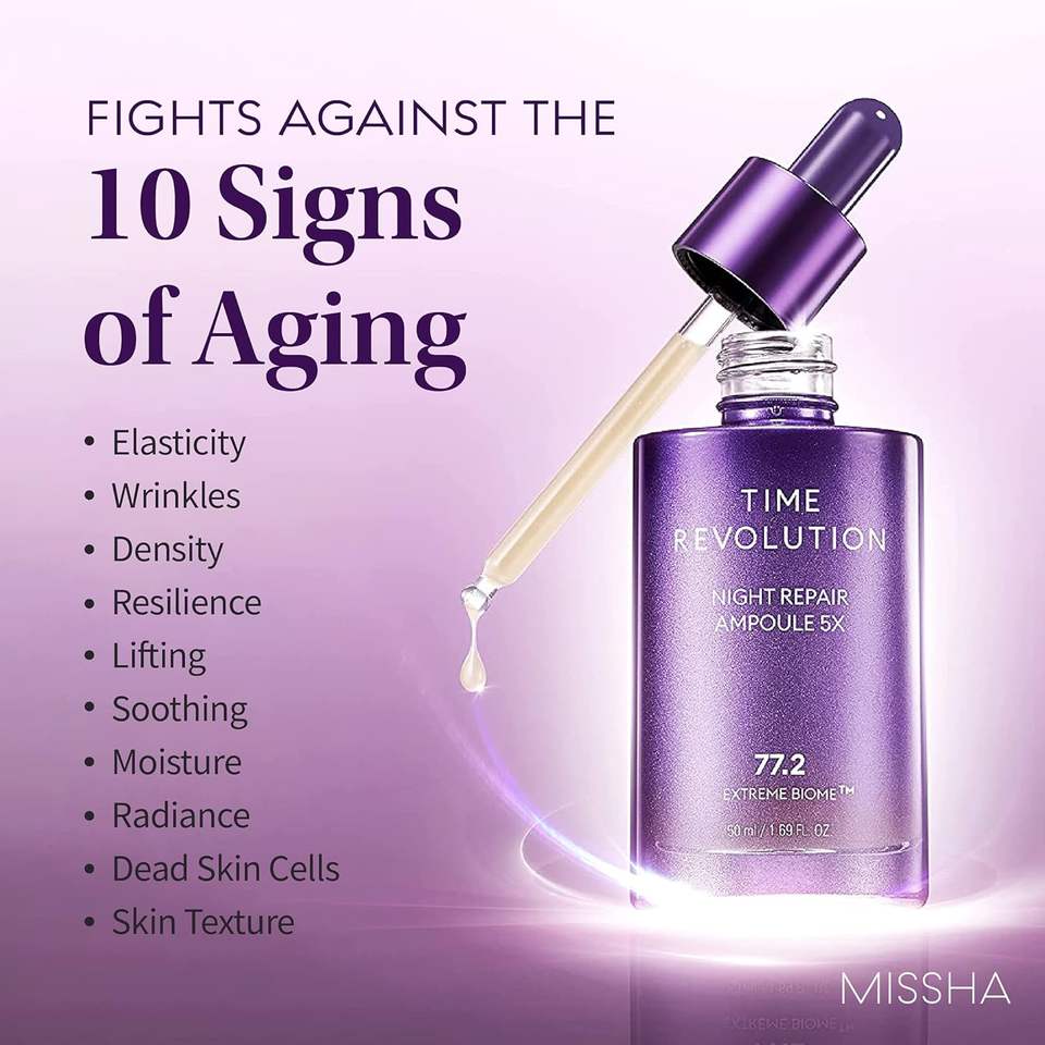 For MISSHA Time Revolution 5th Gen Night Repair Face Serum Ampoule 1.69 Fl Oz Overnight Probiotic Skincare for Radiant Intensive