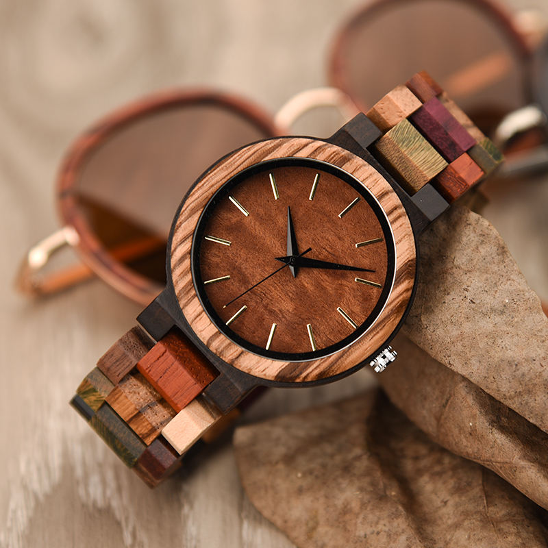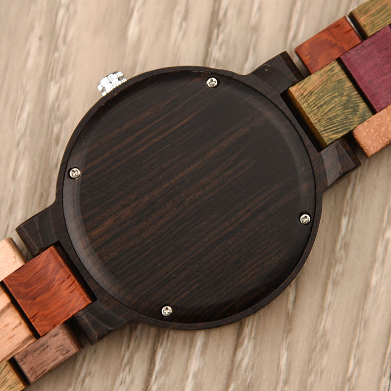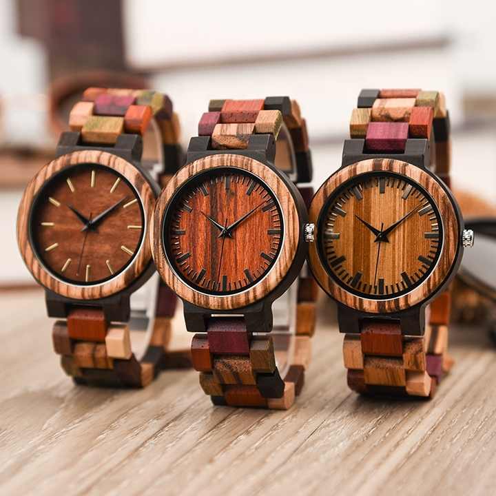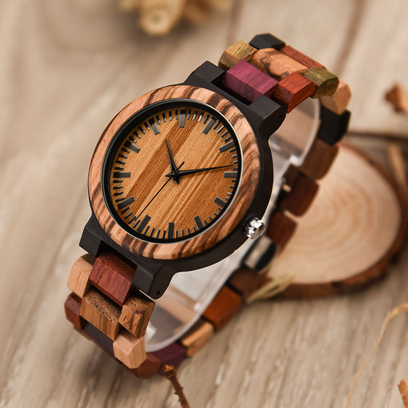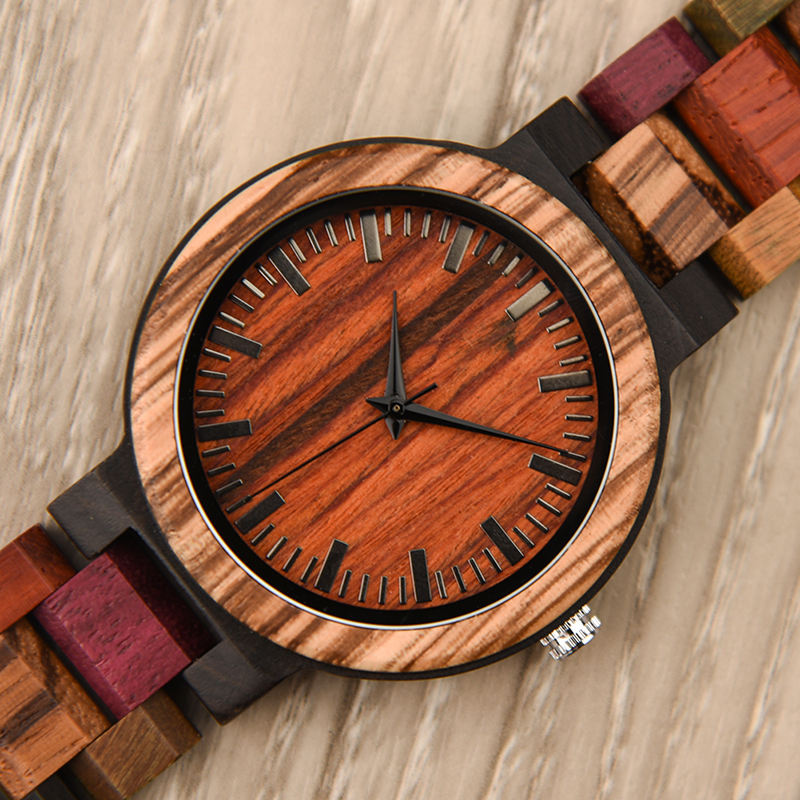 Orologio al Quarzo da Uomo alla Moda con Cinturino in Legno Colorato, Quadrante con Lancette, Confezione Eco-Sostenibile e Movimento MIYOTA