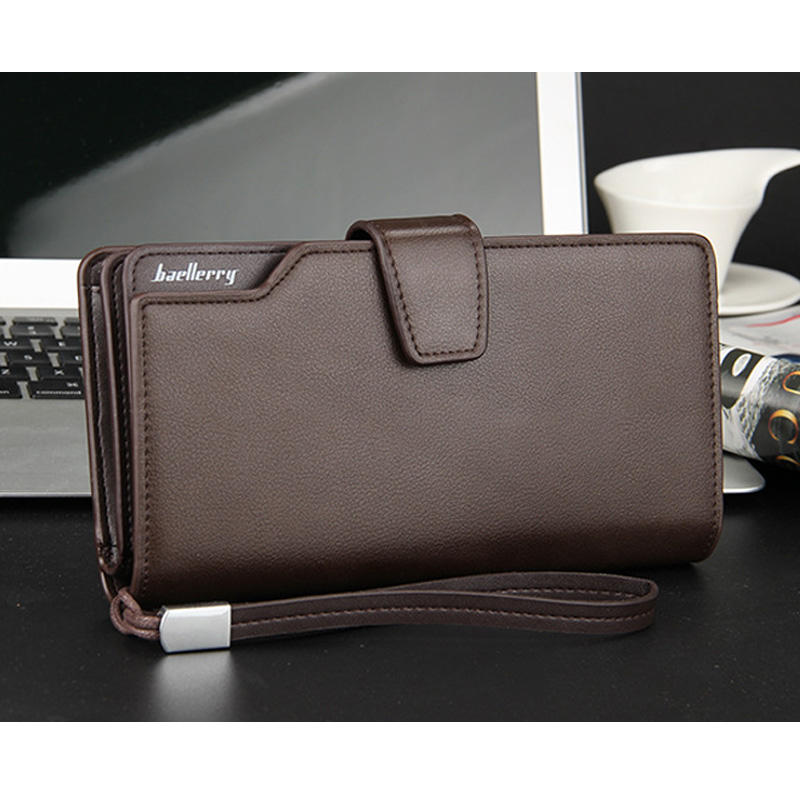 Portafoglio Clutch da Uomo in Pelle PU con Funzione Impermeabile, Fodera in Poliestere, Chiusura Lunga Aperta per Cellulare