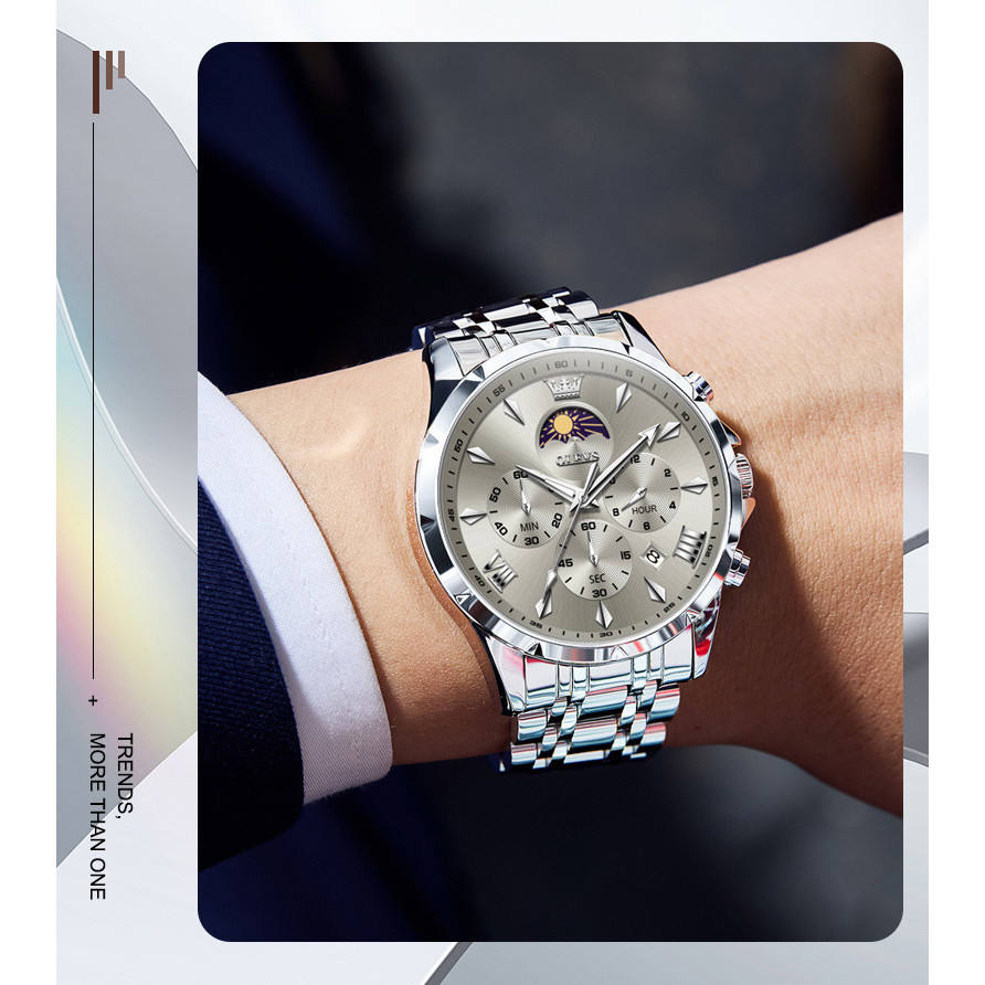 [ chronograph , Moon Phase , Date , Day/Date , Water Resistant ]Feature