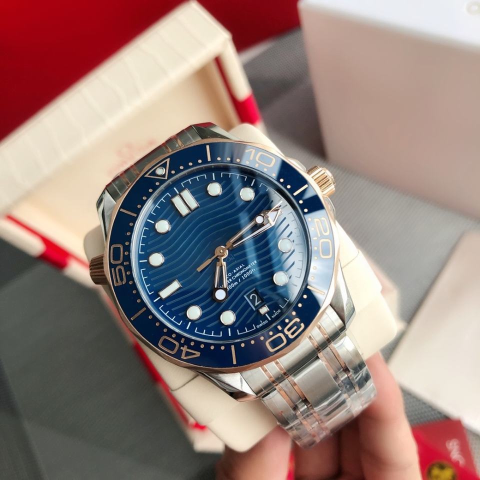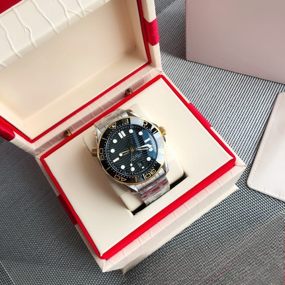 Orologio di Lusso Premium Omega, Movimento Meccanico Automatico, Vetro Zaffiro, Cinturino in Oro, Indicatori Orari Luminosi