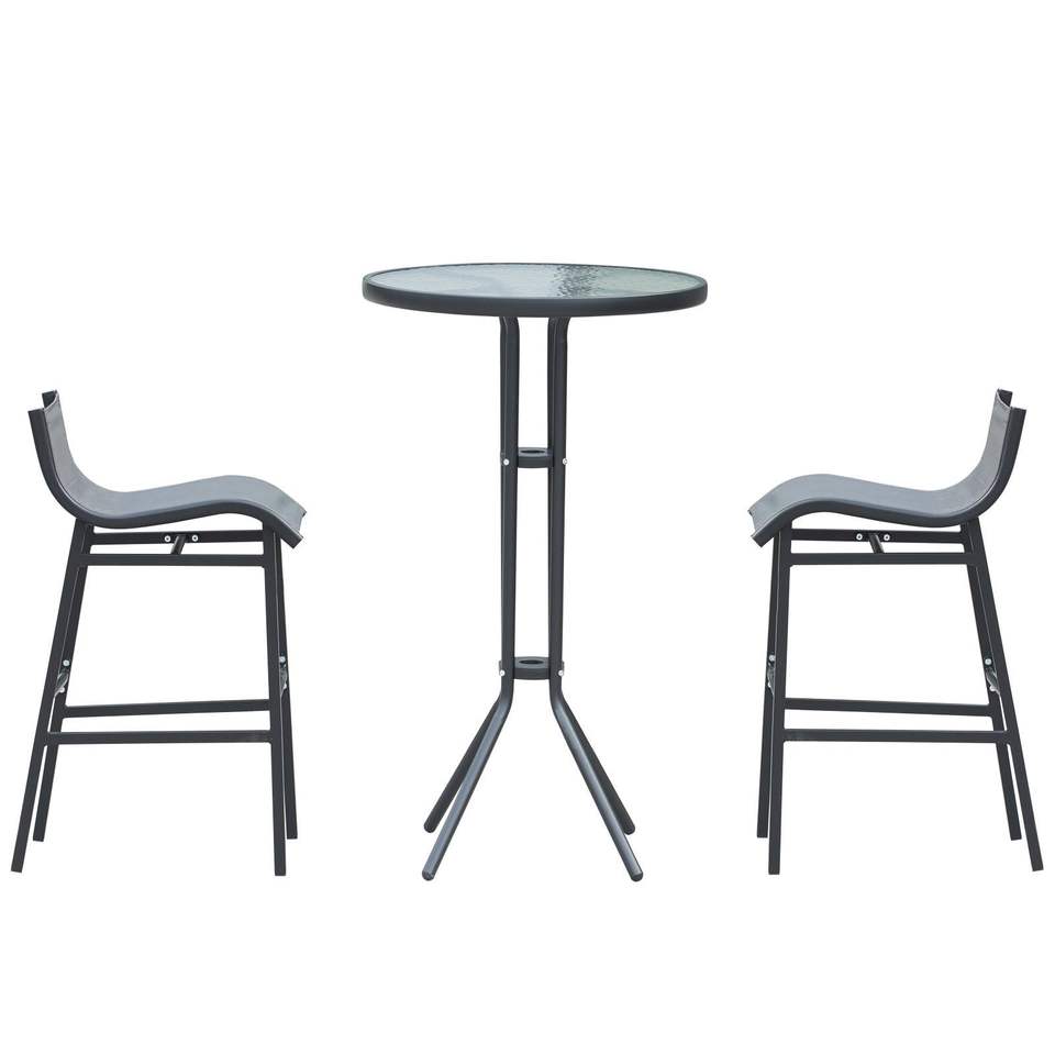 For Outsunny 3-Piece Bar Height Outdoor Bistro Set Comfortable 2 Patio Pub Table 2 Bar Chairs Strong Build Durable Charcoal Gray