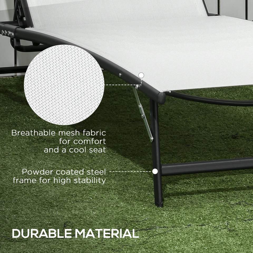 Set di 2 Sdraio da Esterno Bianco Crema con Ruote, 5 Posizioni Regolabili per Patio, Spiaggia o Piscina