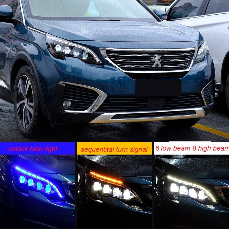 For Peugeot 3008 4008 5008 2017-2019 Year LED Headlight With Sequential Turn Signal Front Lamp Assembly With Daytime Running