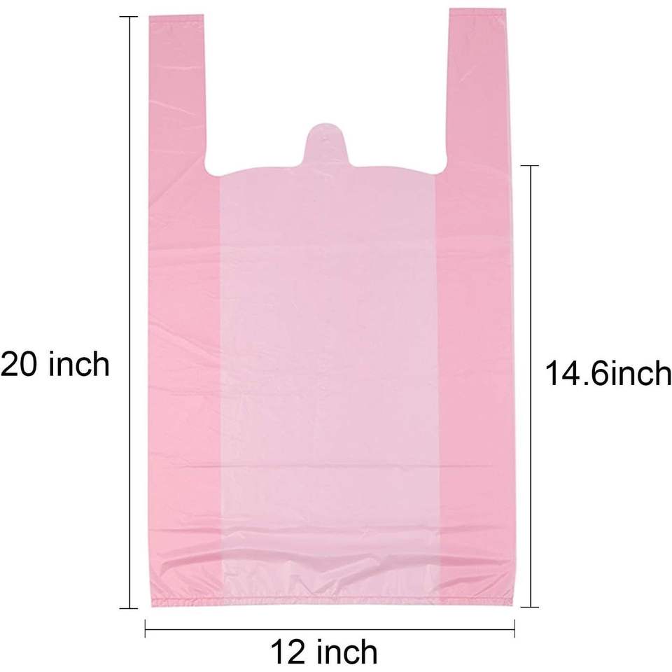 Sacchetti di Plastica Rosa con Manici per T-Shirt, 12x20 Pollici, per Negozi di Alimentari e Commercio al Dettaglio, 50 Pezzi