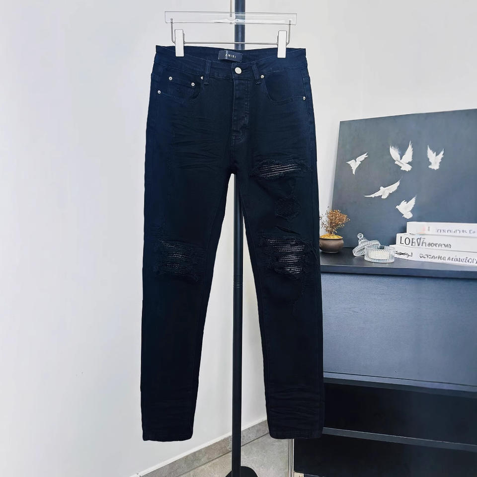 Jeans Bootcut Vintage di Lusso Strappati con Ricamo Rosso per Uomo, Vendita all'Ingrosso Transfrontaliera