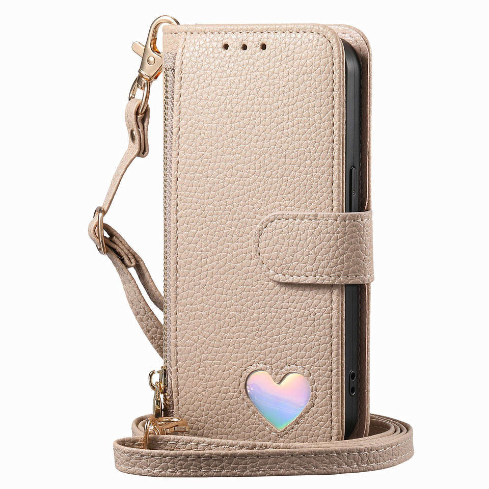 Custodia a Portafoglio con Tracolla e Design a Cuore per Samsung Galaxy S25 Ultra/A16/A17/A25/A05