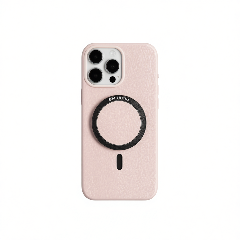 For Samsung S24 Ultra Leather Case with Anti-Drop Magnetic Ring Mobile Phone Accessory