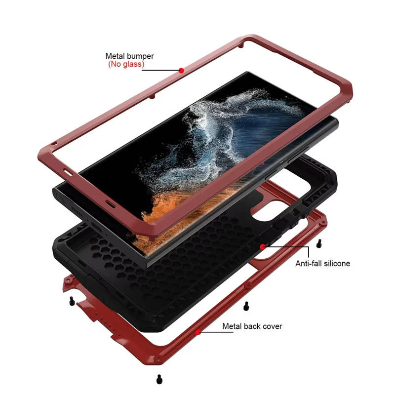 For Samsung S26 S25 S24 S23 S22 S21 + Note 20 Ultra S25 Edge Heavy Duty Protection armor Metal Aluminum Case Shockproof Cover