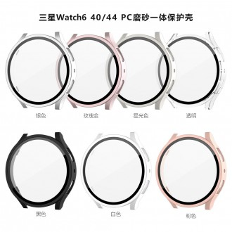 For Samsung for Galaxy Watch 6 Tempered Glass Smart Watch Case PC Oil Spray Frosted with Integrated Protection Cover