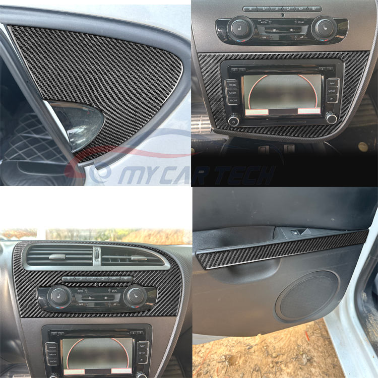 Per Seat Leon 2005-2012 centrale del pannello del cruscotto del cambio della portiera dell'auto in fibra di carbonio copri rivestimento adesivi
