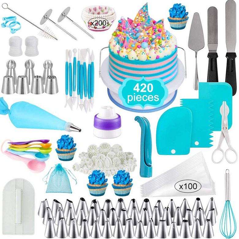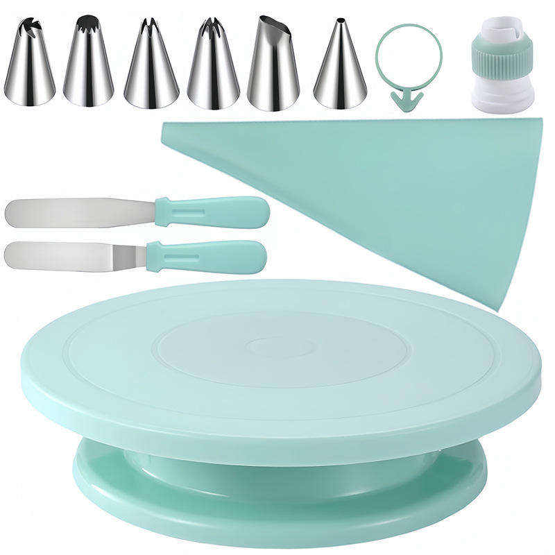 Set di Utensili per Pasticceria con Piatto Girevole in Acciaio Inox, Beccucci per Decorazione, Sacchetto per Pasticceria e Raschietto per Crema