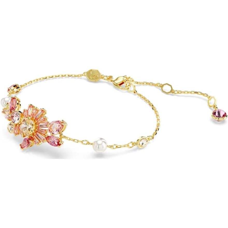 Bracciale Swarovski Gema con Cristalli e Perle, Tagli Misti, Fiore Placcato Oro Rosa con Strass