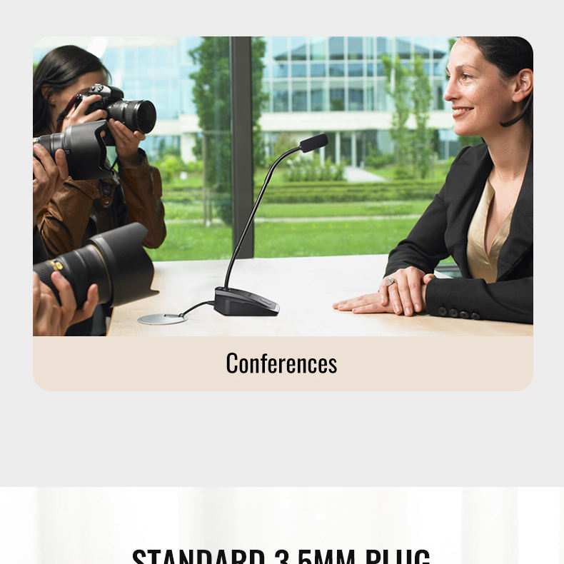 Annullamento di rumore, Luce-peso, Portatile, Microfono a condensatore, collegare e usare, Capsula unidirezionale, ritiro a lunga distanza, Interruttore muto, Base in gomma antiscivolo