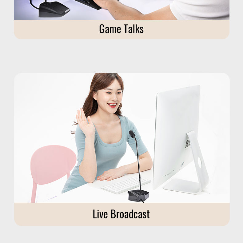 Caratteristiche:Annullamento di rumore, Luce-peso, Portatile, Microfono a condensatore, collegare e usare, Capsula unidirezionale, ritiro a lunga distanza, Interruttore muto, Base in gomma antiscivolo