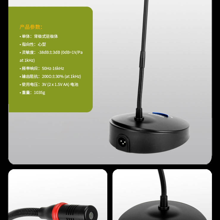 Caratteristiche:Annullamento di rumore, Portatile, Microfono a condensatore, collegare e usare, Capsula unidirezionale, ritiro a lunga distanza, Interruttore muto, Base in gomma antiscivolo