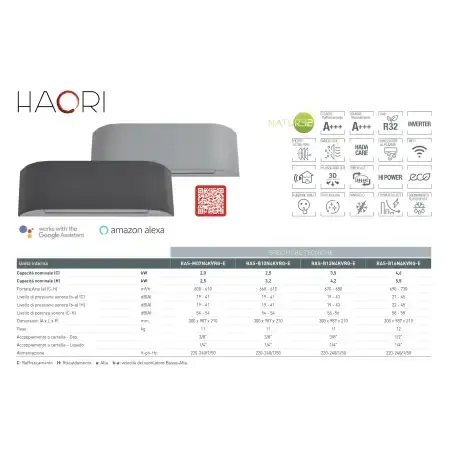Condizionatore d'aria split Haori 10000+10000 BTU RAS-2M14G3AVG-E a frequenza variabile R32 A+++ Wi-Fi per uso domestico