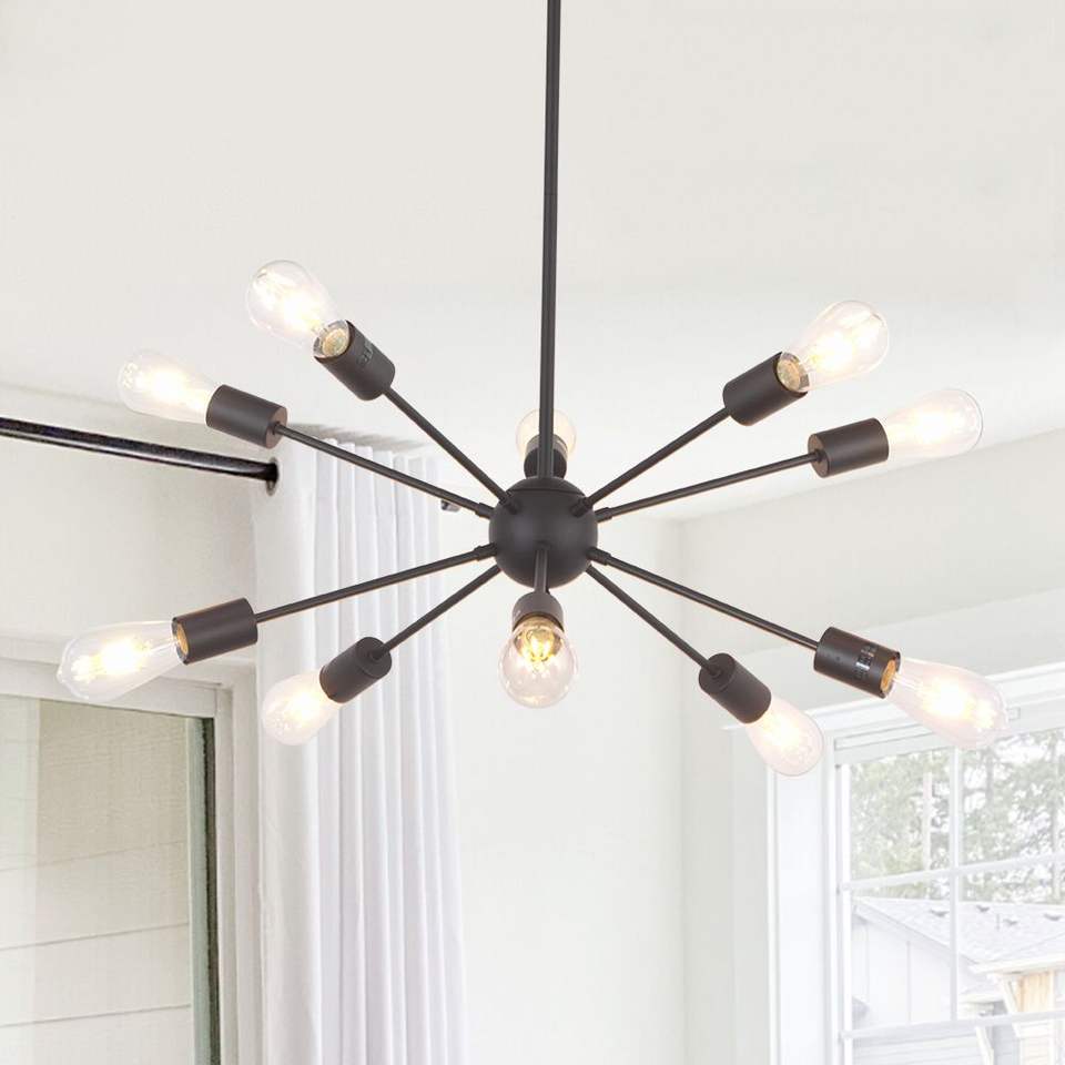 For UL Listed Sputnik 10-Light Black Modern Pendant Industrial Vintage Chandelier Ceiling Light Fixture