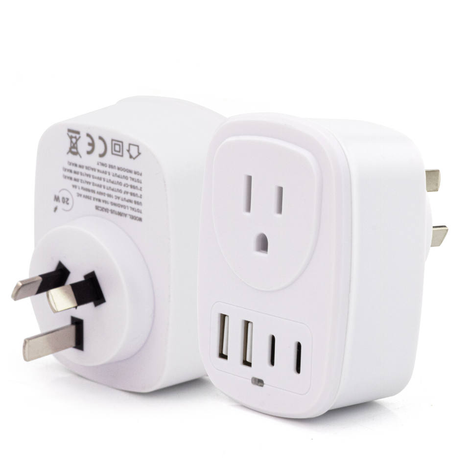 For Wonplug USA to Australia Travel Adapter Plug Converter 2 USB C & 2 USB 15A Rated Current American Socket Outlet AUS Plug Ada